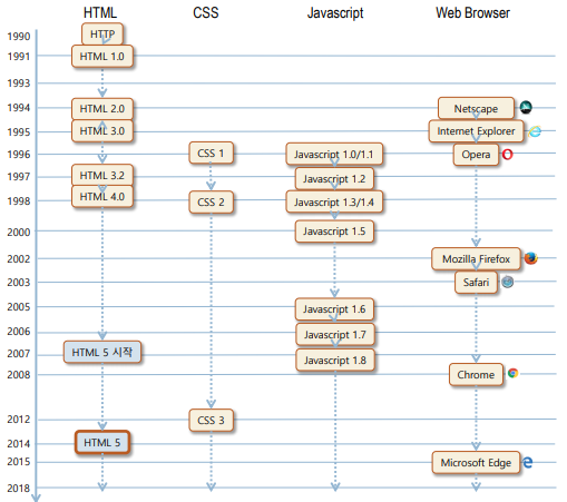 ✔ HTML, CSS, Javascript, 웹 브라우저의 타임 라인