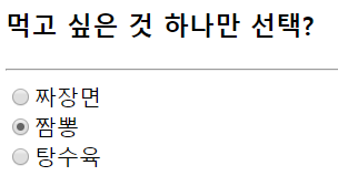 <h3>먹고 싶은 것 하나만 선택?</h3>