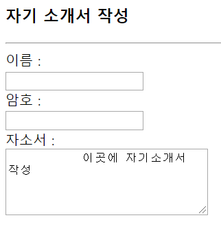 자소서 :<br> <textarea cols="30" rows="5">
